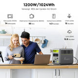 FOSSiBOT Tragbare Powerstation F1200, 1024Wh LiFePO4 Solargenerator mit 2 1200W AC (Spitze 2400W), 100W Typ-C, 0-100% Akku in 45 Min Power Station, für Camping, Wohnmobil, RV, Reisen