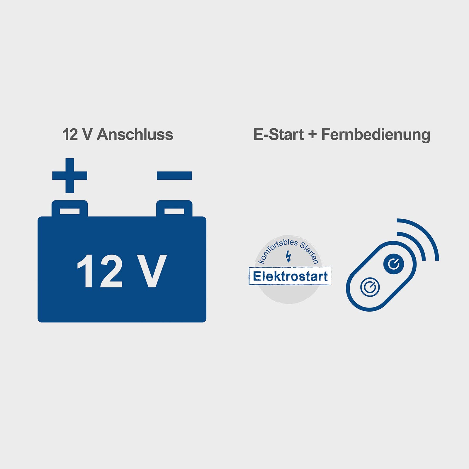 • Elektrostart über Fernbedienung oder Seilzugstarter