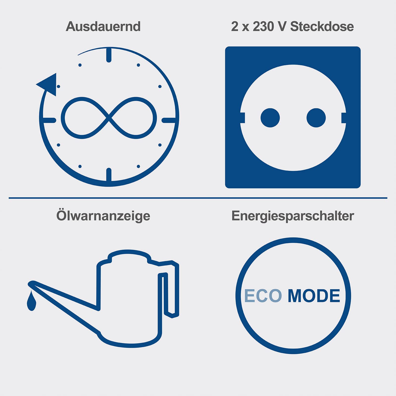 • Luftgekühlter 4-Takt-Benzinmotor mit 5,1 PS / 3,8 kW