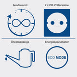 • 3400 W max. Abgabeleistung – 3000 W Nennleistung